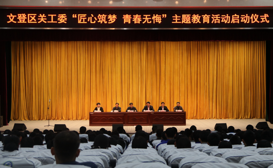 11月28日下午,文登职专与区关工委、团区委联合举办的“匠心筑梦 青春无悔”主题教育活动启动仪式在文登职专礼堂举行。文登区委副书记黄峻峰,区关心下一代委员会主任乔学模,副主任孙松一、王江炜,团区委书记于正军,区关工委秘书长田序滋参加了活动。文登职专校长王喜杰主持了启动仪式,部分师生代表参加了活动。